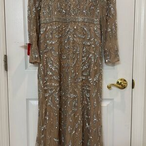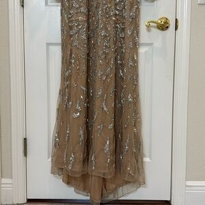 NWT Mac Duggal 5124 Beige Long Sleeve Beaded Evening Gown Size 12.