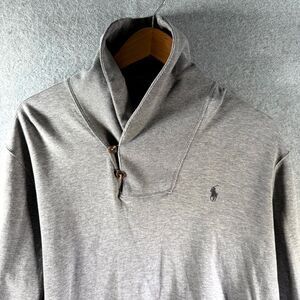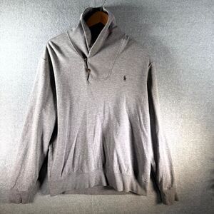 Polo Ralph Lauren Luxury Jersey Men's Large Gray Heather Shawl-Collar Pullover