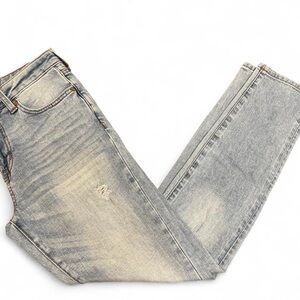 Wear. Light Blue Denim. Four Pockets + Knee Rips. Slim Skinny Tapered Bottoms