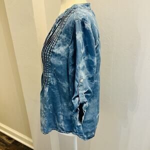 Ruby Rd Petite Women’s PS Tie Dye Shirt Soft Pleats Button Front V Neck ( A0126)