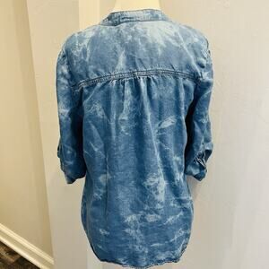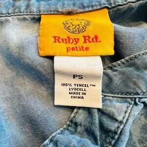The Ruby Rd Petite Women’s Tie Dye Shirt in a colorful blue pattern with soft pleats and a button front closure is a stylish and comfortable blouse for petite women. This top features a flattering v-neck neckline, 3/4 roll tab sleeves, and is made from soft Lyocell material. Perfect for everyday wear, this blouse by Ruby Rd adds a touch of character and charm to any outfit.