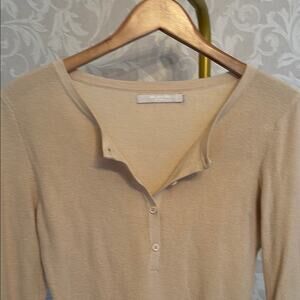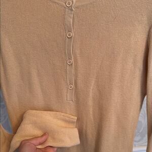 Elegant beige long sleeve top with button details. Perfect for casual or office wear.