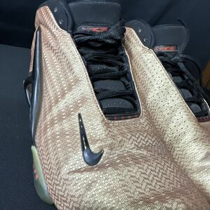 The Nike Zoom HyperFlight Premium Gold Lion Basketball Shoes in size 9 are a stylish and comfortable choice for basketball enthusiasts. Featuring a gold colorway with a lion theme. The 2013 release from Nike's Zoom product line is designed for performance on the basketball court, with a focus on comfort and support. Perfect for any season, these shoes are a standout addition to any activewear collection for men.