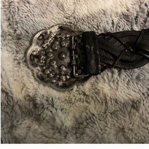 Beautiful vintage black woven genuine leather women’s belt with Decorative/Ornate Buckle: