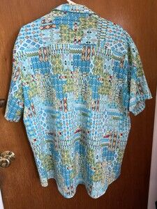 VATPAVE Button Up Shirt Mens XL Abstract Colorful Short Sleeve Cotton Viscose