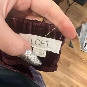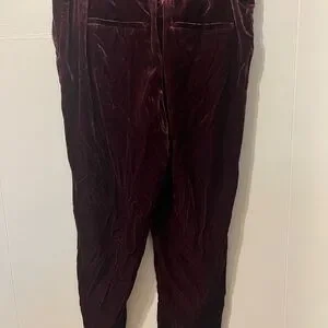 Pleated Tapered Pants in Velvet Size 12 burgundy Loft brand