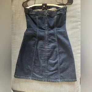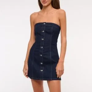 Stylish strapless dress with button detail. Perfect for versatile wear.