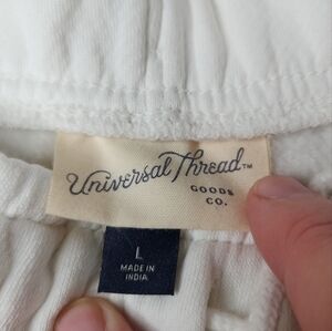 These Universal Thread high-waisted shorts in crisp white offer a relaxed fit, perfect for warm weather. Crafted from a lightweight fabric, they provide comfort and style for any casual occasion.