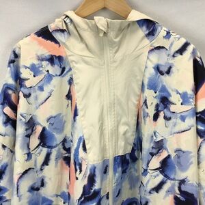 Lane Bryant LIVI Full Zip Hooded Woven Jacket Abstract Blue Sporty Size 26/28