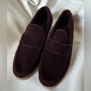 New. Size 8. Burgundy shearling. Cushioned shearling insole.