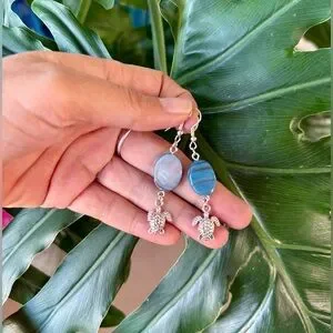 Handmade with shimmering grayish-blue Mother of Pearl and delicate turtle charms, these earrings capture the serene energy of the ocean with a touch of grounding wisdom.