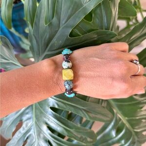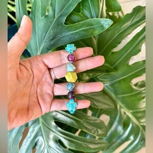 This earthy, soothing bracelet combines the gentle energy of Serpentine, the grounding strength of Jasper, and the calming presence of Howlite, accented with two turtle charms symbolizing longevity, wisdom, and steady progress. Each bead is carefully chosen to support peace of mind, emotional balance, and a deep connection to nature.