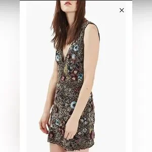 Topshop Bird Embellished Minidress Sequin Beaded Party Event Dress size 4