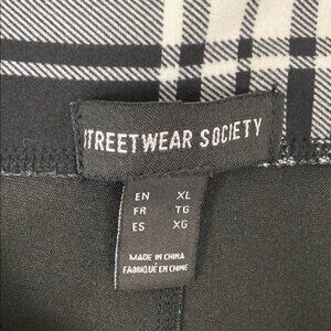 Streetwear Society Dress Leggings / Skinny Pants. Women's tag size XL (see photos for measurements). Polyester / spandex blend. Very soft and very stretchy. Black, white and gray plaid. Zippered pockets. Wide waist band. High rise.