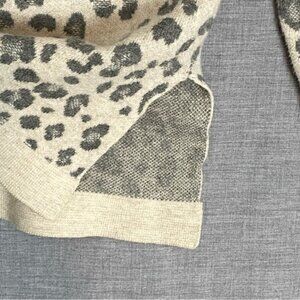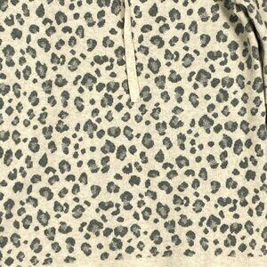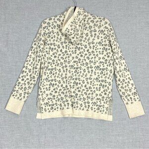 Denver Hayes Hooded Sweater. Women's Size Large. Very soft. Cream with grey leopard print. Split hem. Medium weight tight knit. Drawstring hood.