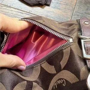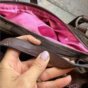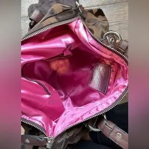 Coach Alexandra brown satchel bag. Hot pink satin lining. Did not see any noticeable flaws aside from some cracking on the straps