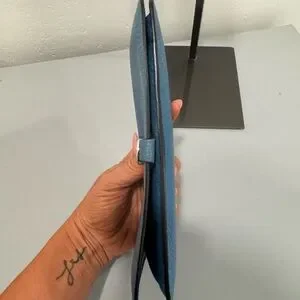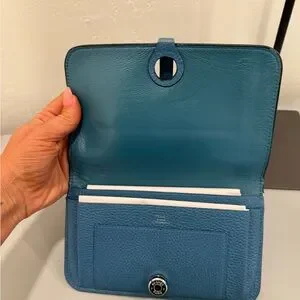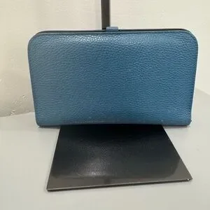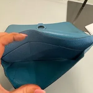 Elegant Hermes wallet in textured blue leather. Perfect for chic organization.