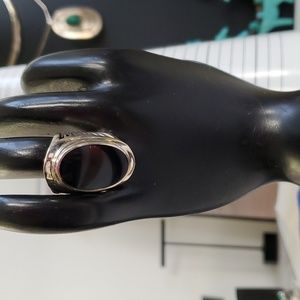 Sterling Silver 925 Onyx Basket Weave Large Statement Ring