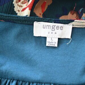 Umgee Women's Mini Dress Tunic Floral Large Open 3/4 Slv Hippie Boho Green