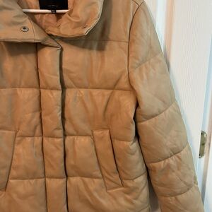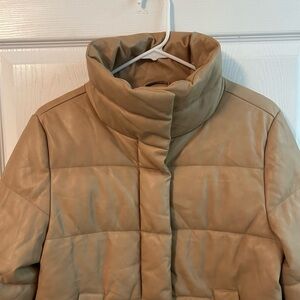 7 For All Mankind Tan Faux Leather Puffer Jacket