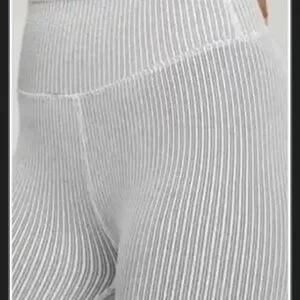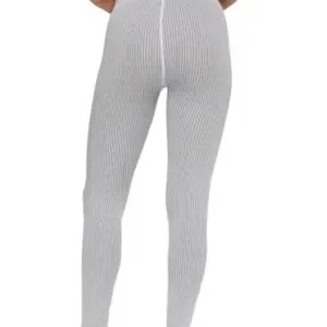 Stylish ribbed leggings in white with black stripes. Perfect blend of comfort and fashion. Ideal for versatile wear.