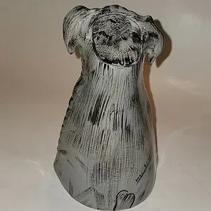 Vintage hand-painted ceramic vase of a Schnauzer dog by Nina Lyman.