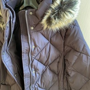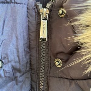 London Fog Faux-Fur-Trim Hooded Down Puffer Coat Med NWT