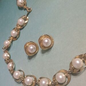 Estate Collection---this exquisite jewelry set features a stunning combination of gold plated hardware embellished with pearls. Perfect for adding a touch of elegance to any outfit. Measures 9" inches in length