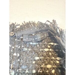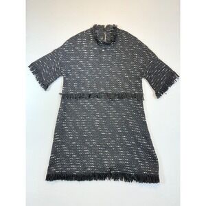 Zara Woman Tweed Fringed Mini Dress Black and White Size L