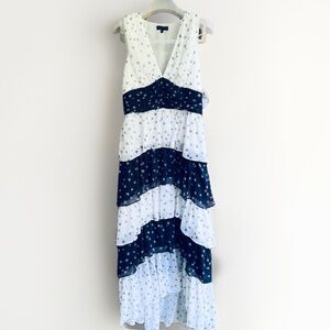 1.state Womens Colorblocked Tiered Maxi Dress New Ivory Dark Indigo Size 10 NWT