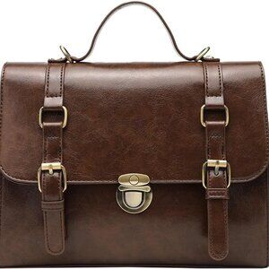 Features: Compact faux leather satchel with a sleek silhouette and vintage-inspired golden hardware. Adjustable and detachable shoulder strap for versatile wear — crossbody, shoulder bag, or mini briefcase. Interior includes one main zipper pocket and an internal zipper pocket, roomy enough for your phone, small wallet, cosmetics, keys, and notes. Easy to carry, effortlessly stylish, and perfect for work, shopping, or weekend outings.