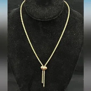 Bolero style with a heart pendant. Twist chain. Really unique. Looks well made. Tassel or bolo style