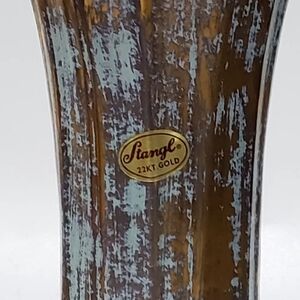 1957 Stangl #3154 Antique Gold, 7.5" 22KT Gold Turquoise Blue Green Flared Vase