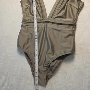 Ted Baker Pointelle Deep V Swimsuit Womens TB 1 / US 4 Khaki Olive Green Ton NWT. New with tags condition, please review all pictures for more details and measurements.