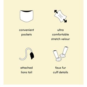 Let your inner child roar with excitement in this adorable lion costume. It is perfect for imaginative play and costume parties. New in bag, never opened or worn. Unisex sizing. Please refer to size guide.