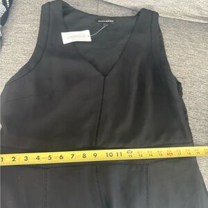 This elegant black dress from Banana Republic showcases a sleeveless design with a classic A-line silhouette, perfect for both casual and work occasions. The crew neck adds a touch of sophistication, while the midi length offers a versatile and timeless appeal. Its minimalist design ensures a sleek and polished look for any setting.