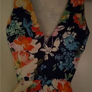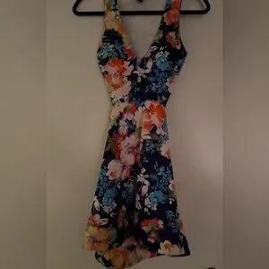 Vibrant floral mini dress. Deep V-neckline. Perfect for homecoming, dinner, parties, weddings, or any other outing do you want to dress up and look cute for! 🩷💙