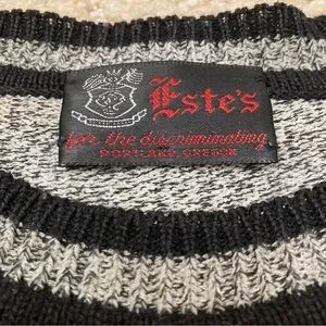 Vintage 80’s geometric print sweater, men’s large. Super cool funky / trippy design. Rainbow stripe down the front and stripes on the sleeves. Eclectic grandpa vibes. In excellent condition with no rips, holes, or stains.