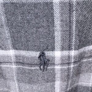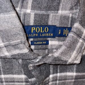 Stylish plaid shirt by Polo Ralph Lauren. Features black and gray tones. Ideal for casual wear.