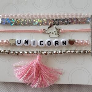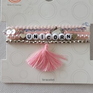 Beaded, Holographic sequin, Unicorn charm, Letter beads, Beaded tassel