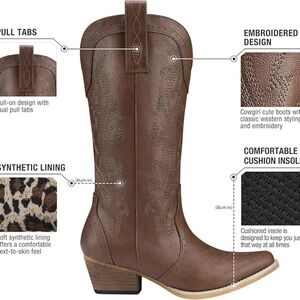 All-Day Comfort: Soft synthetic lining wicks away sweat and odor for dry comfort. Low chunky heel prevents feet fatigue during long wear. Cushioned insole cradles arches with silent grip and stable traction. Our cowboy boots deliver cloud-step comfort all day long
