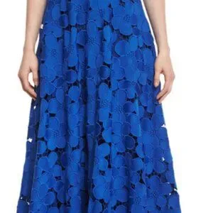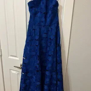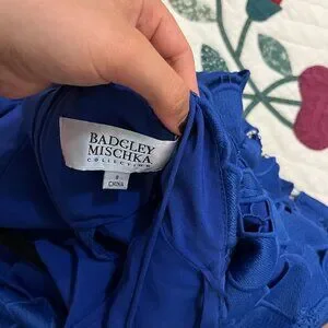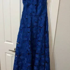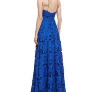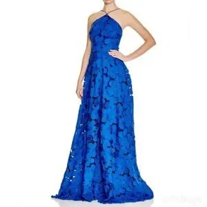 Badgely Mischka Collection Long Halter Lace Gown Royal Blue