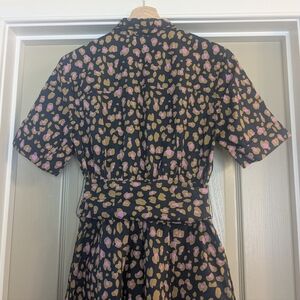 A very chic J. Crew midi shirt dress in a classic animal print. Crafted from airy cotton, this dress is perfect for effortless styling across spring, summer, and fall.