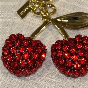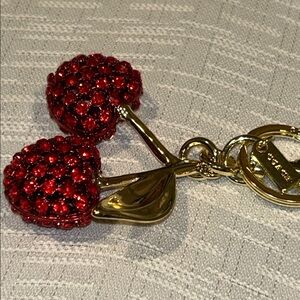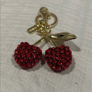Charming cherry design with sparkling red stones. Gold-tone finish adds elegance. Ideal for keys or bags.