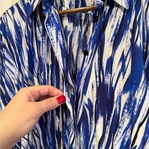 Proenza Schouler amazing button up full dress with adjustable waist with a gathered tie. A nice quality fabric. Button placket all the way down. Beautiful color blues & cream.