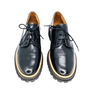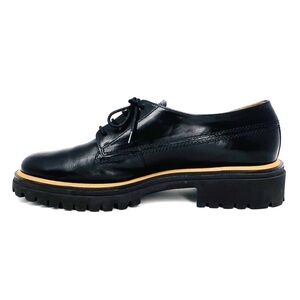 Paul Green Oxford Shoes Size 9 Laced Super Soft Black Leather Lug Sole Menswear
