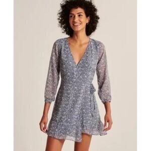 Abercrombie & Fitch Womens Chiffon Mini Wrap Dress Size L Micro Floral Feminine