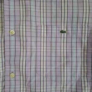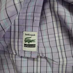 Lacoste Mens Oxford Shirt Purple White Tattersall Long Sleeve 100% Cotton 38