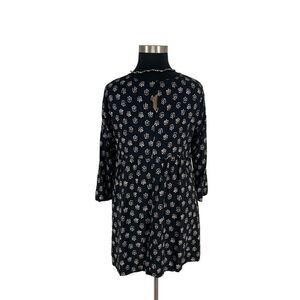Old Navy XL Black Patterned Tunic Dress Shift A Line 3/3 Sleeve Rayon