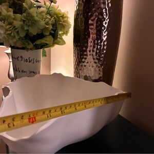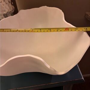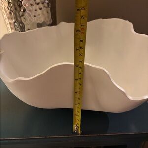 Elegant white ceramic bowl with scalloped edges. Perfect for decor or serving.